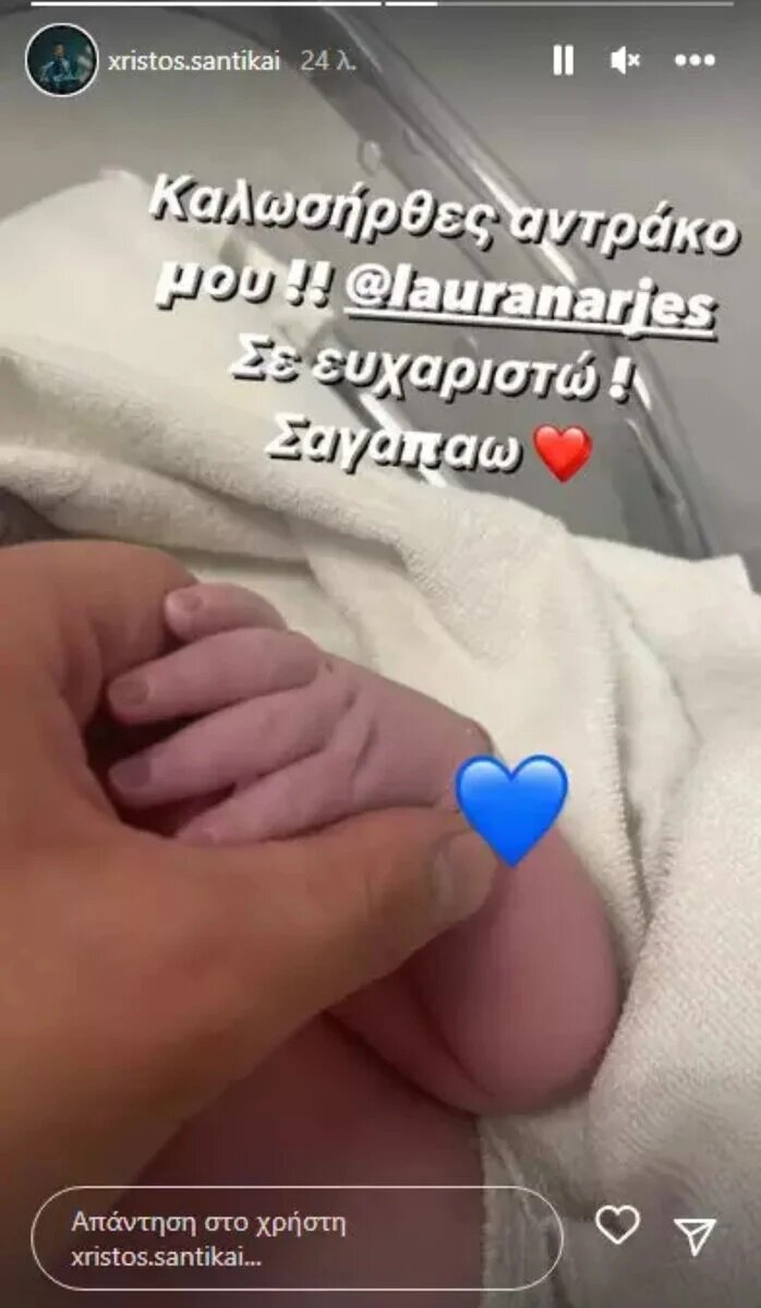Ο Χρήστος Σαντικάι και η σύντροφός του Λάουρα Νάργες υποδέχτηκαν τον καρμπό του έρωτά τους στις 21 Σεπτεμβρίου.