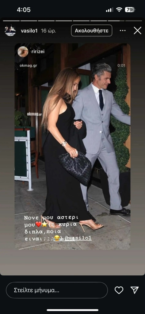 Ο Χρήστος Βασιλόπουλος δεν έχασε την ευκαιρία και ανέβασε στα στόρι του στο Instagram οκτώ διαφορετικά captions με σχόλια για τη «συνάντησή» του με την πανέμορφη Λατίνα ηθοποιό από το «νονέ μου, αστέρι μου, η κυρία δίπλα ποια είναι» που γράφτηκε από τη βαφτισιμιά του Χρήστου Βασιλόπουλου μέχρι αναρτήσεις από ιστοσελίδες που αναφέρθηκαν στις φωτογραφίες του πρωταγωνιστή δίπλα στην τέως σύζυγο του Μπεν Άφλεκ, το διαζύγιο των οποίων ήταν επί μήνες πρωτοσέλιδο στο διεθνή Τύπο.
