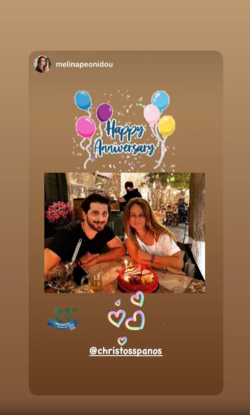 Με μια τρυφερή ανάρτηση στον προσωπικό λογαριασμό του Χρήστου Σπανού στο Instagram, ο ηθοποιός δημοσίευσε μια φωτογραφία της Μελίνας Παιονίδου και σημείωσε: «Και όλα ξεκίνησαν με ένα ραβασάκι. Χρόνια μας πολλά υπέροχο πλάσμα».