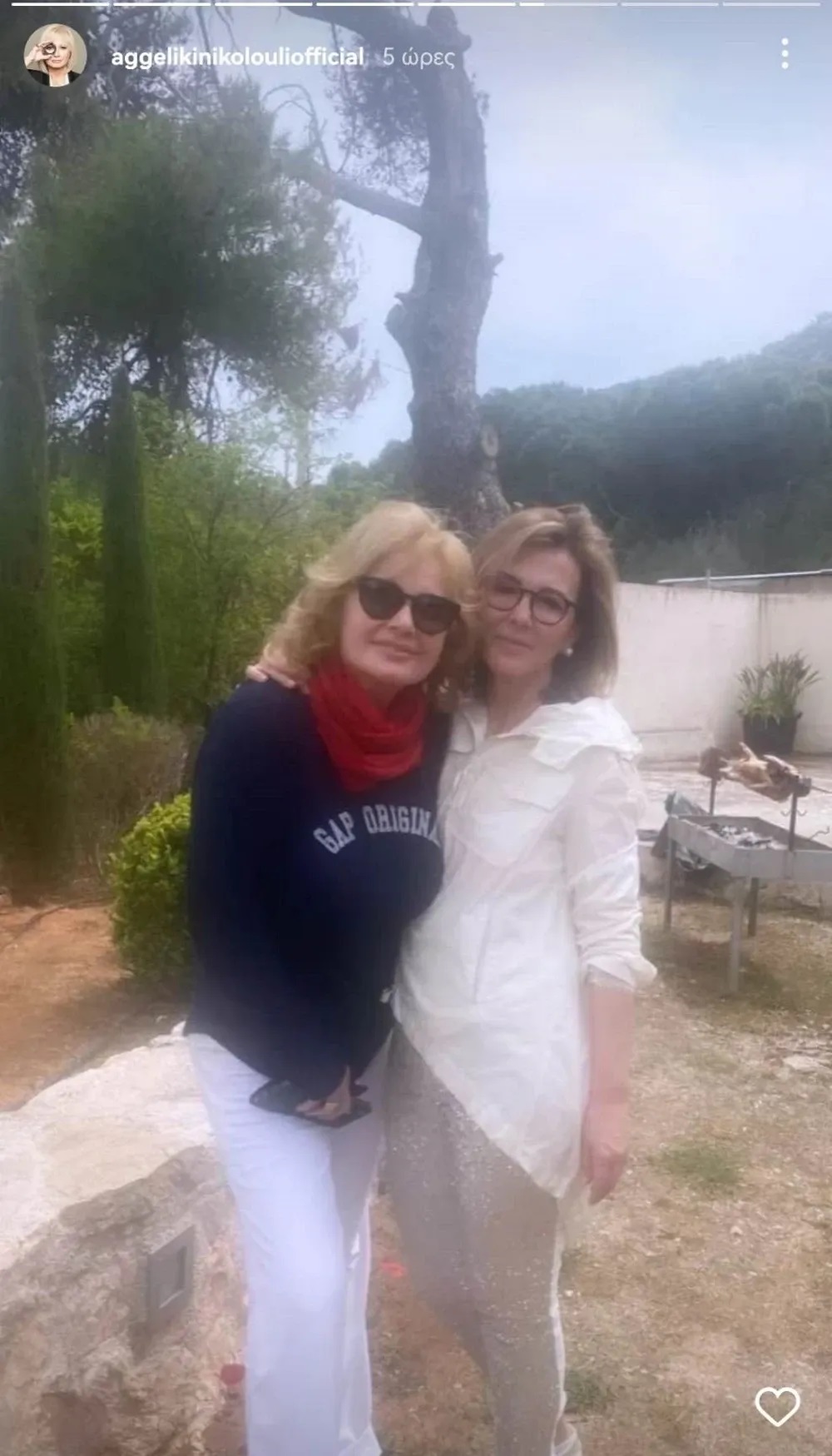 Η Αγγελική Νικολούλη και στις δύο φωτογραφίες γιόρτασε την Κυριακή του Πάσχα φορώντας ωστόσο γυαλιά ηλίου, καλύπτοντας τα μάτια της.
