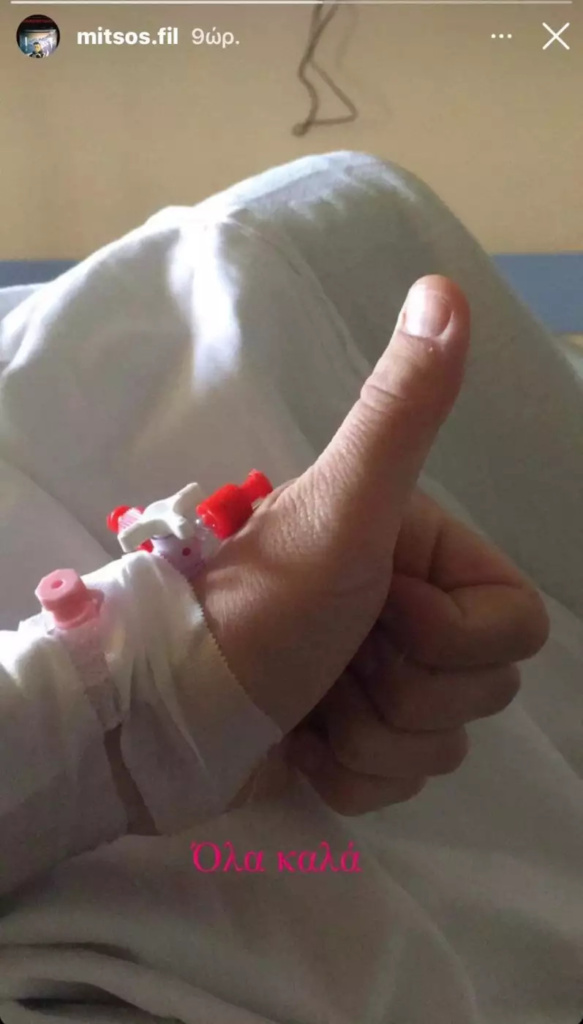 Πιο συγκεκριμένα, ο Δημήτρης Φιλιππίδης μας ενημέρωσε πως βρίσκεται στο νοσοκομείο όταν χθες το πρωί (22/04) δημοσίευσε στον προσωπικό του λογαριασμό στο Instagram, μια φωτογραφία που δείχνει τον ίδιο να είναι ξαπλωμένος σε κρεβάτι νοσοκομείου με όρο στο χέρι.