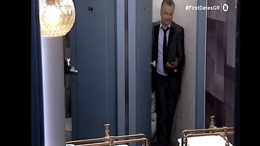 Ενώ και ο Σπύρος φάνηκε να απογοητεύεται από το ραντεβού καθώς μόλις κάθισαν πήγε στην τουαλέτα προκειμένου να πάρει τηλέφωνο τον κουμπάρο του.