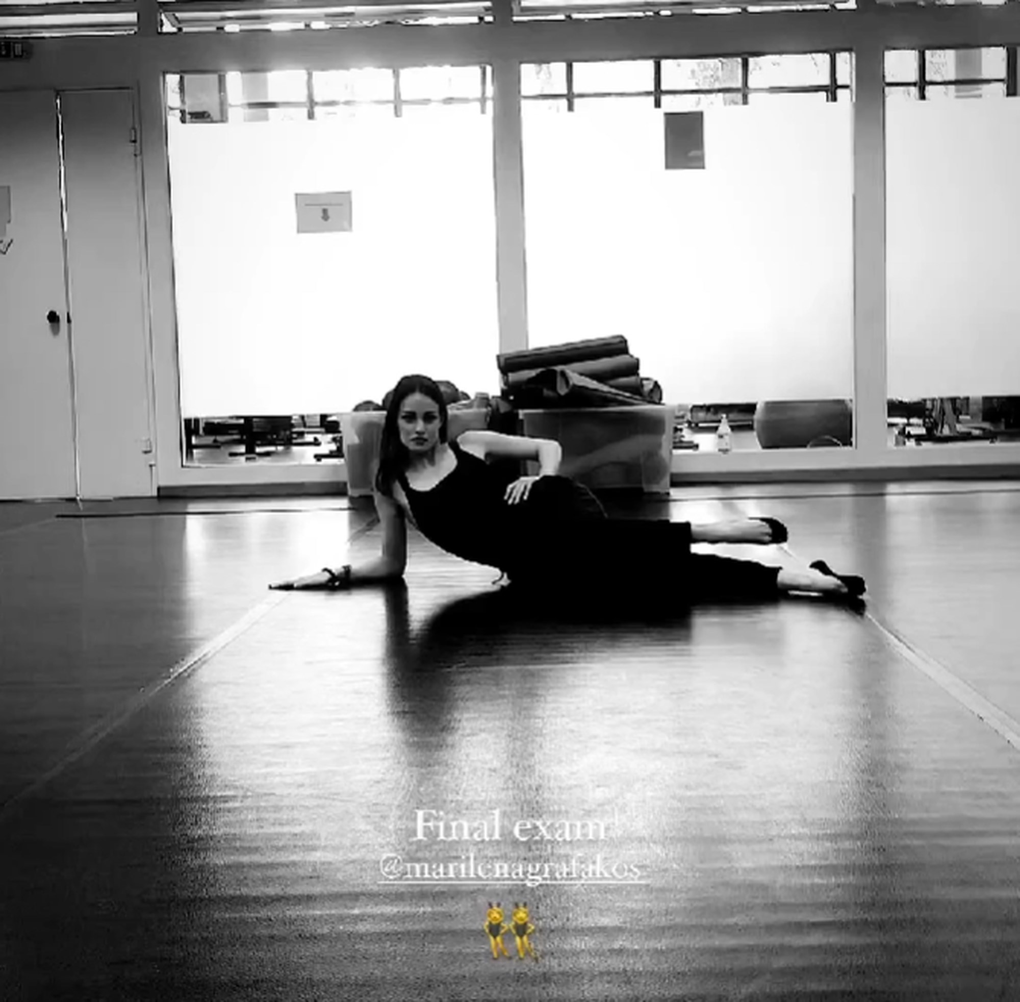 Πιο συγκεκριμένα η Μαρία Βοσκοπούλου δημοσίευσε στιγμιότυπα από τις εξετάσεις στον χορό στις οποίες χόρευε ένα απόσπασμα από το μιούζικαλ “Cabaret”. Στις φωτογραφίες που δημοσίευσε την βλέπουμε να φοράει ένα μαύρο κορμάκι και φόρμα και να έχει ένα έντονο μακιγιάζ. Και έγραψε στην λεζάντα “Τελική εξέταση”, ελπίζουμε να πήγαν όλα καλά στις εξετάσεις της και να την απολαύσουμε σύντομα σε κάποιο μιούζικαλ. Ενώ δημοσίυεσε και ένα βίντεο όπου μας δείχνει τις ικανότητές της στον χορό.