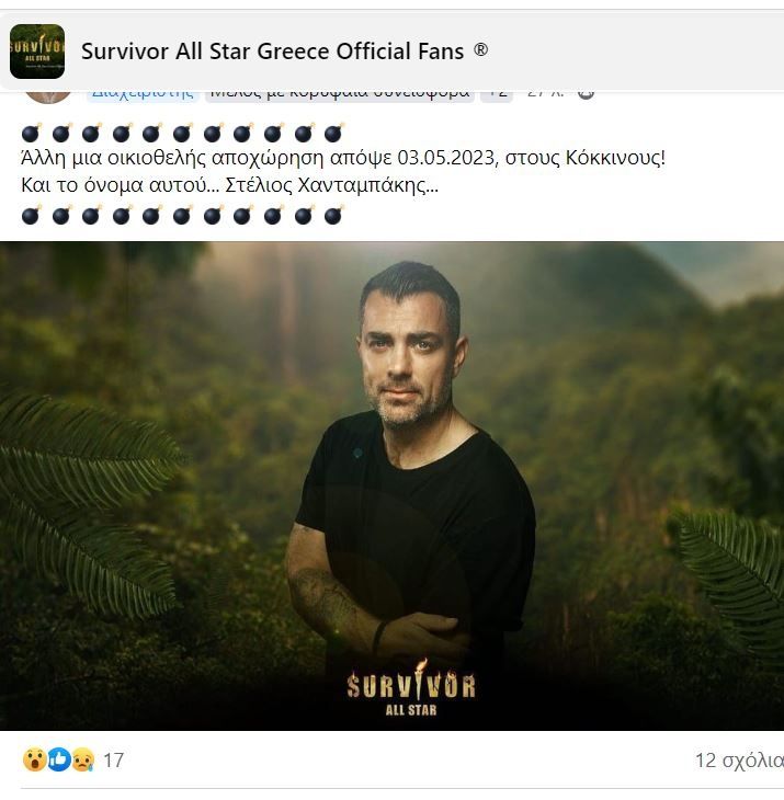 Με τα spoilers που κυκλοφορούν αναφέρουν ότι ο Στέλιος Χανταμπάκης αποχωρεί οικειοθελώς από το Survivor All Star