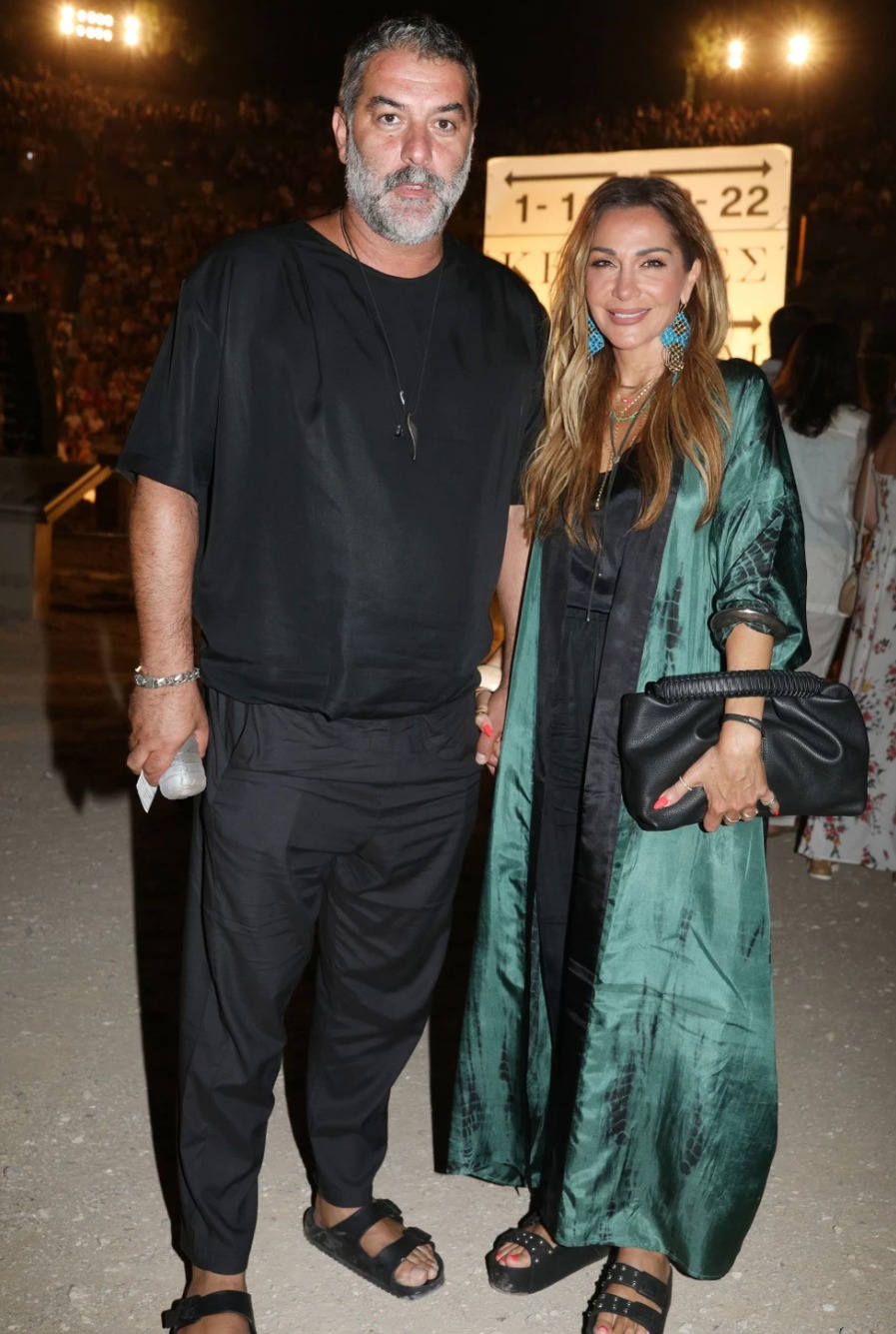 Τόσο η τραγουδίστρια, όσο και ο ηθοποιός επέλεξαν καλοκαιρινά λουκ, με φαρδιά παντελόνια, ενώ η Δέσποινα Βανδή φόρεσε και ένα μεταξωτό κιμονό σε πράσινους τόνους. Ολοκλήρωσαν την εμφάνισή τους με μαύρα σανδάλια.