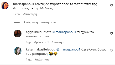 Την παρατήρηση την έκανε follower στο Instagram της Βανδή αν και η παρατήρηση από κάτω από άλλον follower κέρδισε την παράσταση, γράφοντας πως δεν παρατήρησε τα παπούτσια των δυο γυναικών καθώς κοιτούσε αυτά του Βασίλη Μπισμπίκη… ο οποίος δεν φορούσε παπούτσια αλλά ήταν ξυπόλητος στο γρασίδι.