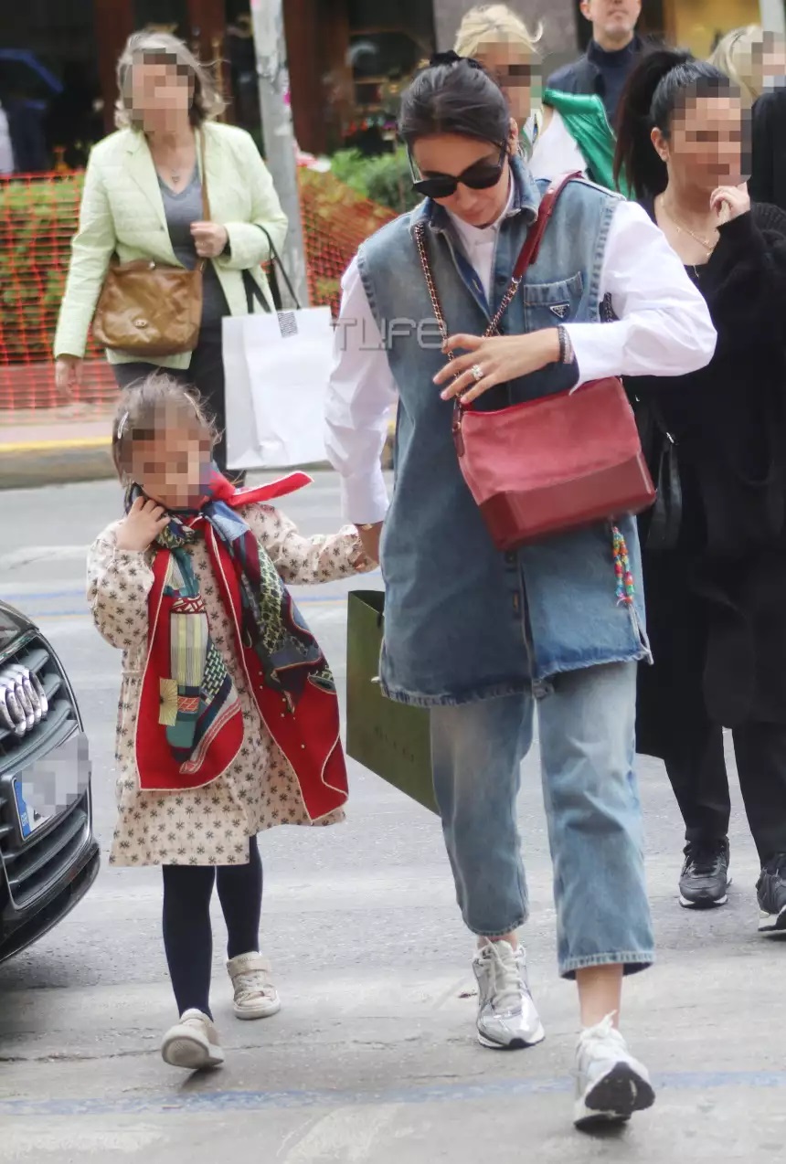 Μάλιστα, ο φωτογραφικός φακός απαθανάτισε την Ολυμπία Χοψονίδου σε μια σπάνια εμφάνιση με μία από τις μεγαλύτερες κόρες της στο κέντρο της Αθήνας.