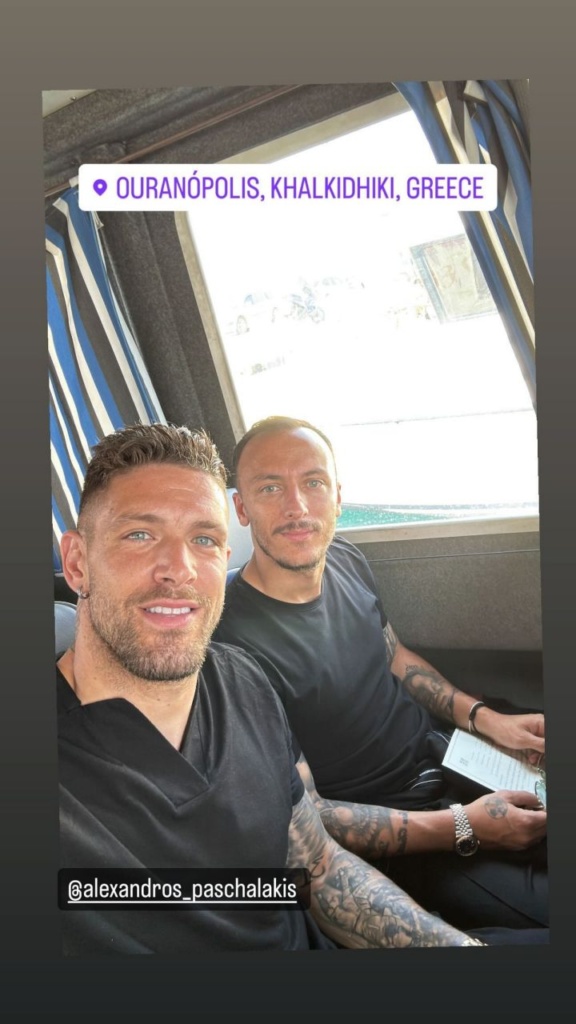 Έτσι με τον άλλοτε συμπαίκτη του στον ΠΑΟΚ, Έργκις Κάτσε, απολαμβάνουν τις διακοπές τους και ταξίδεψαν στη Χαλκιδική για να επισκεφτούν το Άγιο Όρος.