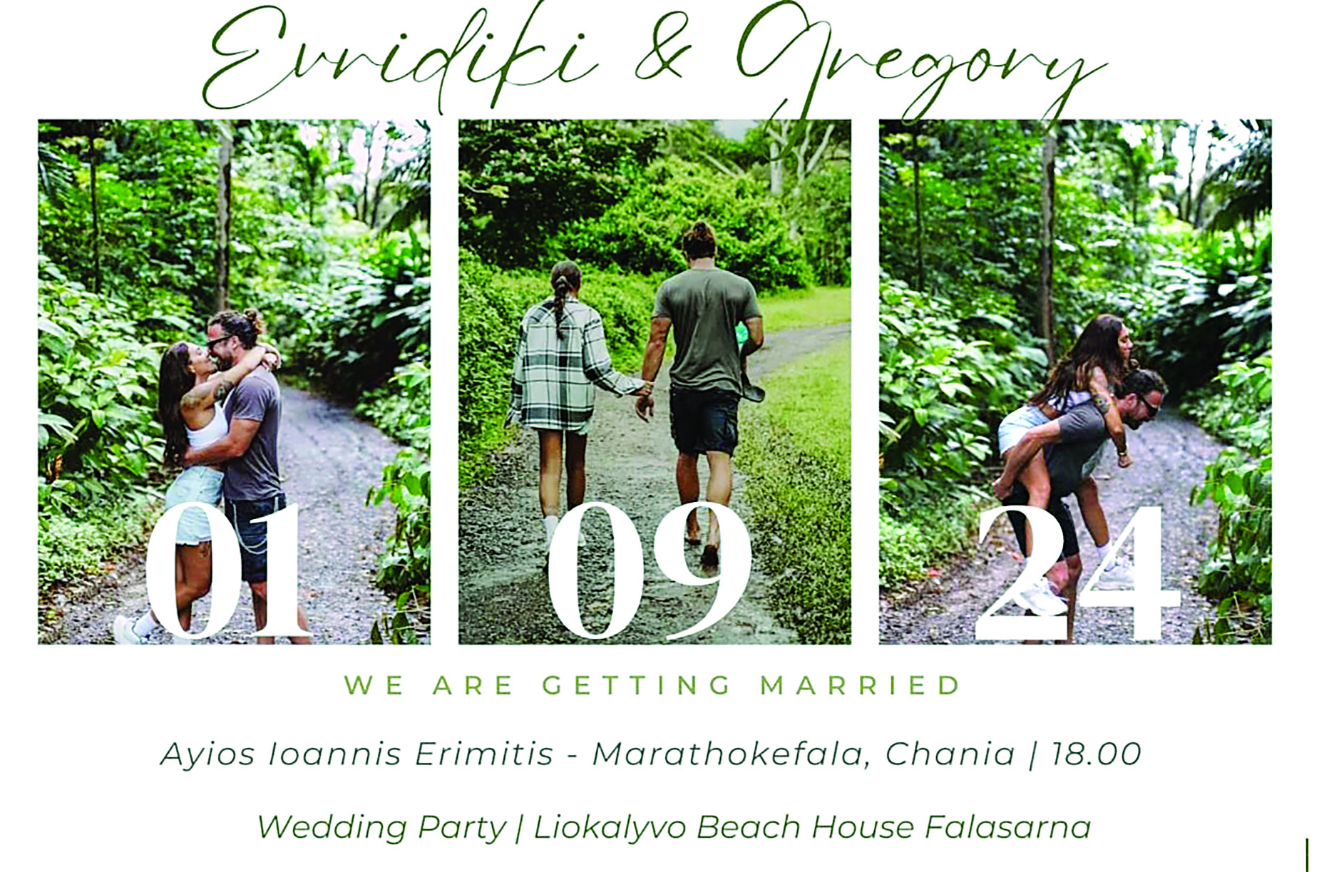 Οπως διαβάζουμε στο προσκλητήριο, ο γάμος θα πραγματοποιηθεί στον Άγιο Ιωάννη τον Ερημίτη, στη Μαραθοκεφάλα στα Χανιά στις 6 το απόγευμα, ενώ μετά το μυστήριο θα ακολουθήσει ξέφρενο πάρτι στο στα Φαλάσαρνα.