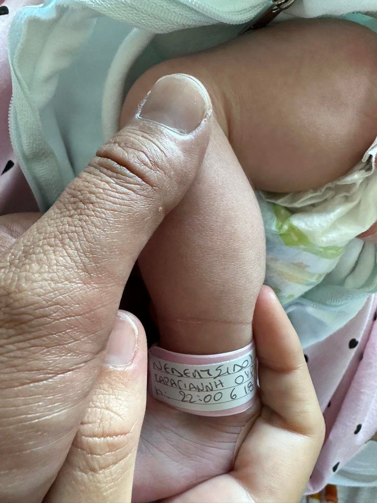 Η τρισευτυχισμένη Ράνια έγραψε στο Facebook κάτω από την φωτογραφία που ανάρτησε, στην οποία κρατάει στην παλάμη της το ποδαράκι του μωρού της: