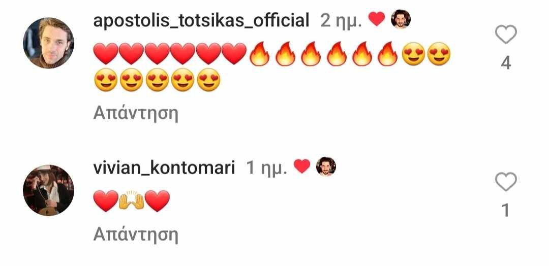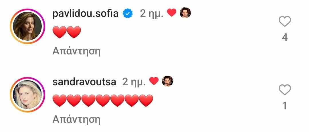 Φυσικά η ανάρτηση αυτή συγκέντρωσε πολλά likes και σχόλια, με πολλούς συναδέλφους –αλλά και μη– του ηθοποιού να σχολιάζουν με emojis σε σχήμα καρδούλας.