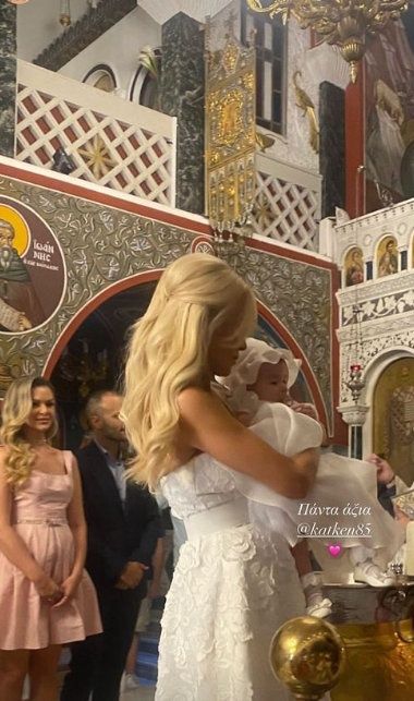 Η βάπτιση της μικρής πραγματοποιήθηκε σήμερα στον Ιερό Ναό Αγίου Νικολάου στη Γλυφάδα, όπου η Κατερίνα Καινούργιου έλαμπε με ένα λευκό κοκτέιλ φόρεμα, αφήνοντας την εντυπωσιακή της παρουσία να φωτίσει τη σημαντική αυτή στιγμή.