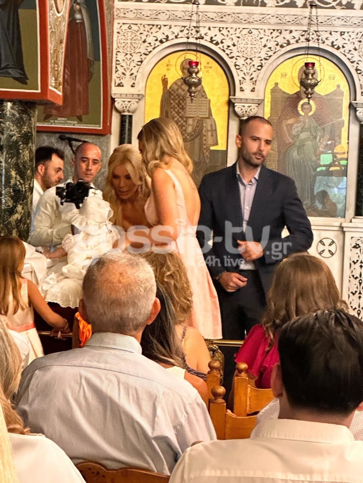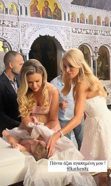Η βάπτιση της μικρής πραγματοποιήθηκε σήμερα στον Ιερό Ναό Αγίου Νικολάου στη Γλυφάδα, όπου η Κατερίνα Καινούργιου έλαμπε με ένα λευκό κοκτέιλ φόρεμα, αφήνοντας την εντυπωσιακή της παρουσία να φωτίσει τη σημαντική αυτή στιγμή.