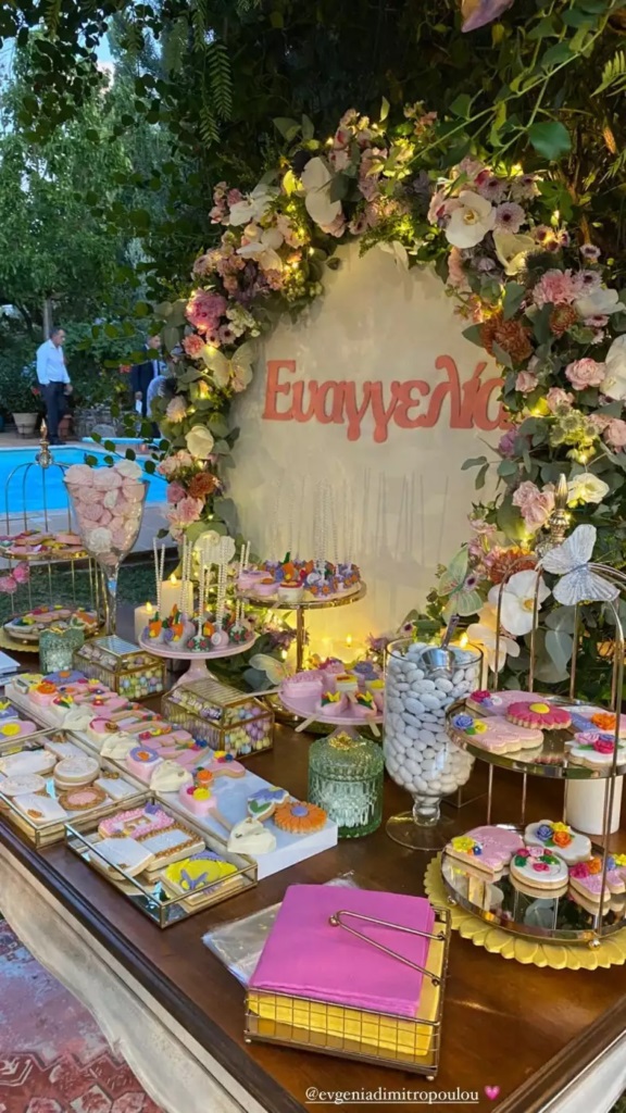 Η αποκάλυψη έγινε μέσα από τα social media, καθώς η Δήμητρα Λαζαράτου και η ηθοποιός Δέσποινα Τσούτσα μοιράστηκαν φωτογραφίες από το candy bar, το οποίο έγραφε με μεγάλα γράμματα το όνομα της νεοφώτιστης, το οποίο είναι Ευαγγελία.