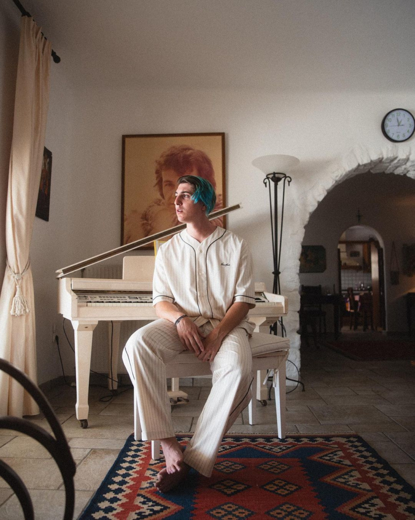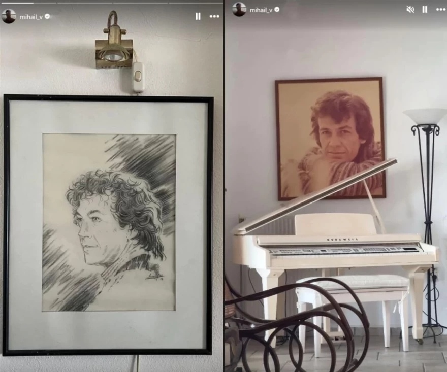 Φυσικά, δεν θα μπορούσε να λείπει ένα πιάνο από τον χώρο, αφού η μουσική είναι η ζωή του καλλιτέχνη, ενώ παρατηρεί κανείς πως στους λευκούς του τοίχους έχει τοποθετήσει κάποια κάδρα με φωτογραφίες του ή ζωγραφιές με το πρόσωπό του.