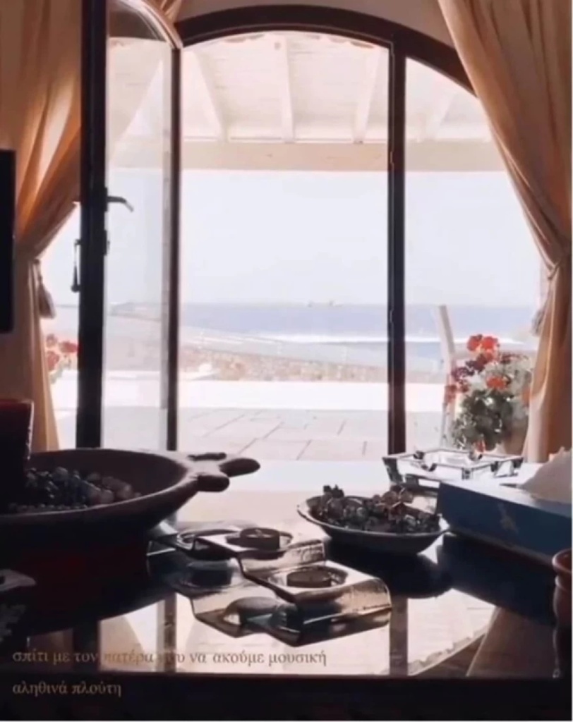 Πρόκειται για ένα κυκλαδίτικο σπίτι με μινιμαλιστικούς τόνους, που θυμίζει χλιδάτο δωμάτιο ξενοδοχείου. Αυτό που ξεχωρίζει είναι το άνετο σαλόνι με την τεράστια τζαμαρία, η οποία βλέπει στην αυλή και στην θάλασσα που βρίσκεται ακριβώς απέναντι.