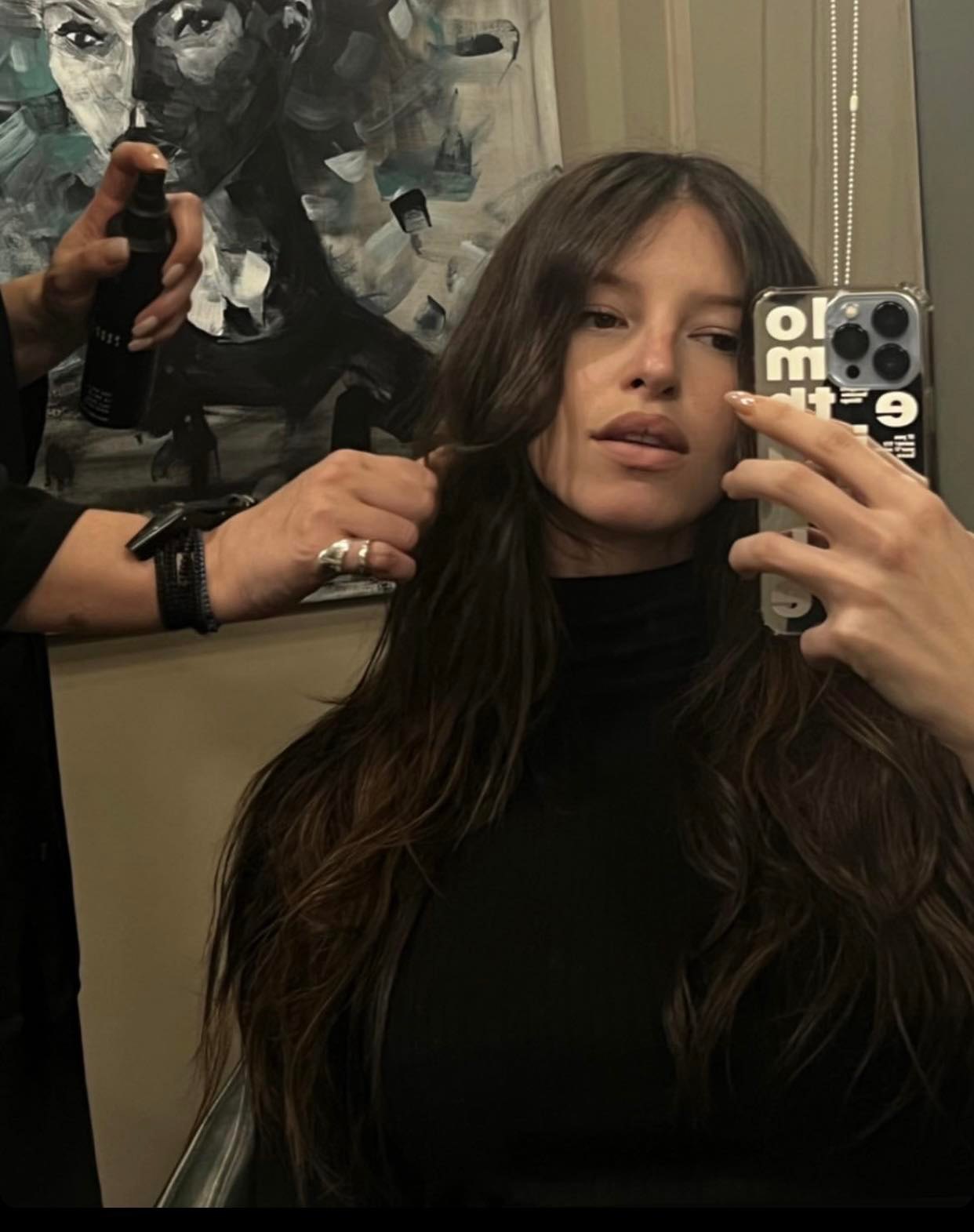 Το μοντέλο ξαναέβαψε σκούρα τα πολύ μακριά μαλλιά της, τα οποία για πρώτη φορά είναι τόσο wavy και φωτογραφήθηκε επανερχόμενο στα φυσικά της χρώματα που της έδωσαν και το εισιτήριο για το σπίτι του GNTM.