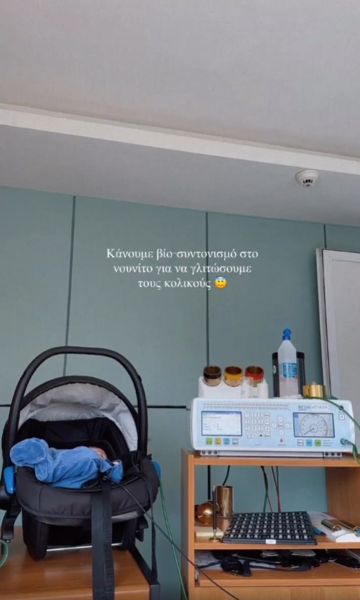 Το περίπου ενός μήνα μωρό της πήγε για βιοσυντονισμό για την καταπολέμηση των κολικών η Ιωάννα Τούνη.