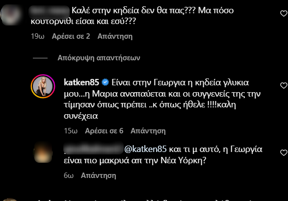 Η ίδια, απάντησε πως η κηδεία θα γίνει στην Γεωργία με τους ακόλουθούς της να απαντούν πως η Γεωργία είναι πιο κοντά από τη Νέα Υόρκη…