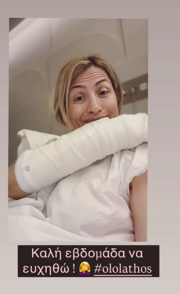 Συγκεκριμένα, η παρουσιάστρια μοιράστηκε μια ανάρτηση στην οποία φαίνεται με δεμένο το χέρι της.