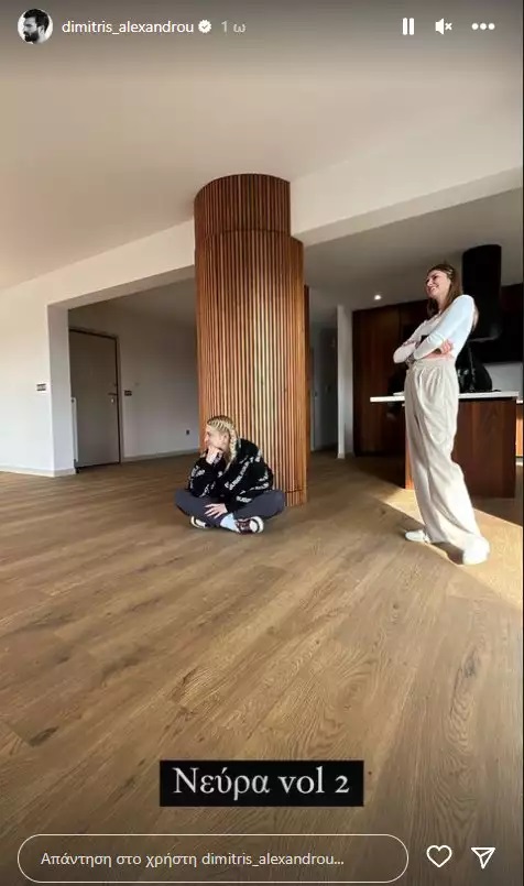 Ο Δημήτρης Αλεξάνδρου δημοσίευσε μια φωτογραφία όπου φαίνεται η είσοδος τους σπιτιού και ενώ περίμενε μαζί με την Ιωάννα Τούνη την μεταφορική τους και τα πράγματά τους. Από όσα μπορούμε να διακρίνουμε και από την φωτογραφία η κουζίνα είναι ντυμένη όλη με ξύλο και πιθανότατα το ξύλο να κυριαρχεί στο νέο τους σπίτι.