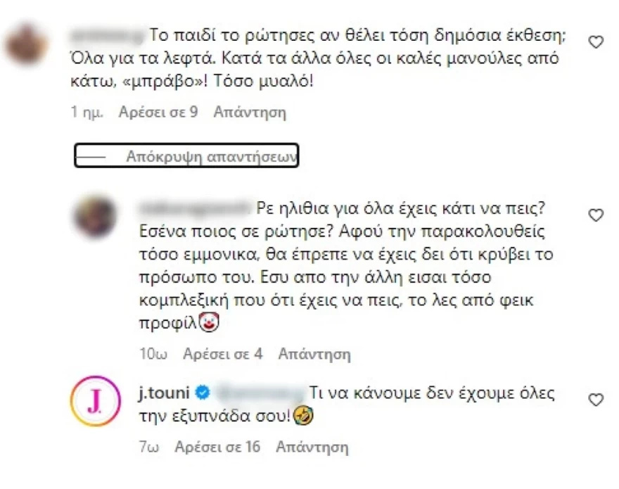 Θυμίζουμε ότι δεν είναι η πρώτη φορά που προκαλεί αντιδράσεις, ούτε καν πρώτη αυτό το μήνα. Πρόσφατα η Ιωάννα Τούνη είχε βρεθεί ξανά στο «μάτι του κυκλώνα» όταν σε βίντεο που ανέβασε με τη μικρή ξαδέλφη της, δεν ήταν λίγοι εκείνοι που βρήκαν αφορμή για να κάνουν σεξιστικά σχόλια. Ένα από τα πιο έντονα σχόλια ανέφερε: «Πόσο πάτε κι οι δύο; Κακομοίρες», με την Ιωάννα να μην αφήνει το σχόλιο αναπάντητο και να απαντά με οξύ τόνο: «Εσύ ξέρεις καλύτερα από ταρίφες. Για πες μας».