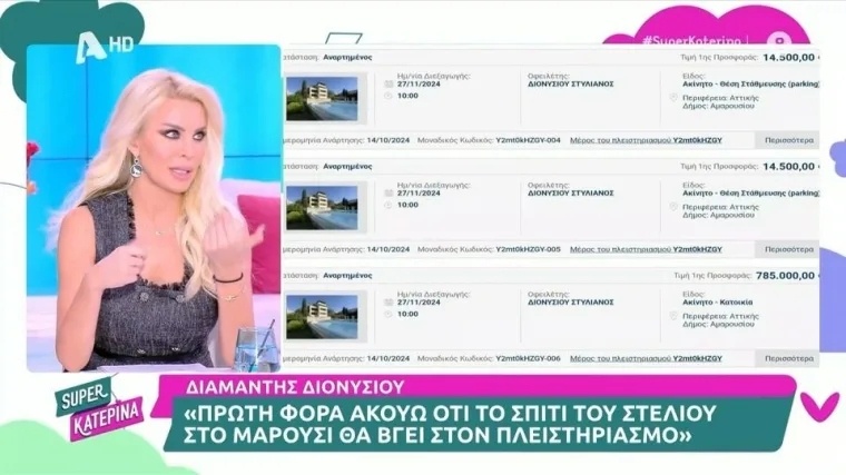 Η Σταματίνα Τσιμτσιλή αναφέρθηκε στα όσα είπε η Κατερίνα Καινούργιου αναφορικά με τον πλειστηριασμό του πατρικού της, με αφορμή τον πλειστηριασμό της μεζονέτας του Στέλιου Διονυσίου.