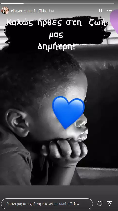 Το απόγευμα του Σαββάτου 13 Ιουλίου, η γνωστή ηθοποιός δημοσιεύοντας για πρώτη φορά φωτογραφία με το μικρό αγόρι, αποκάλυψε το ευτυχές γεγονός καλωσορίζοντας στη ζωή της τον μικρό Δημήτρη.