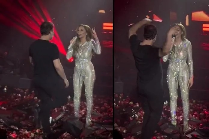 Την ώρα που την έραινε με δεκάδες δίσκους με λουλούδια, ο λαϊκός τραγουδιστής σχολίαζε παράλληλα από το μικρόφωνό του τις χορευτικές επιδόσεις της νεαρής κοπέλας χρησιμοποιώντας μία περίεργη σύγκριση με τον περίφημο χορό του Βασίλη Μπισμπίκη μπροστά από τη Δέσποινα Βανδή λίγες ημέρες πριν.