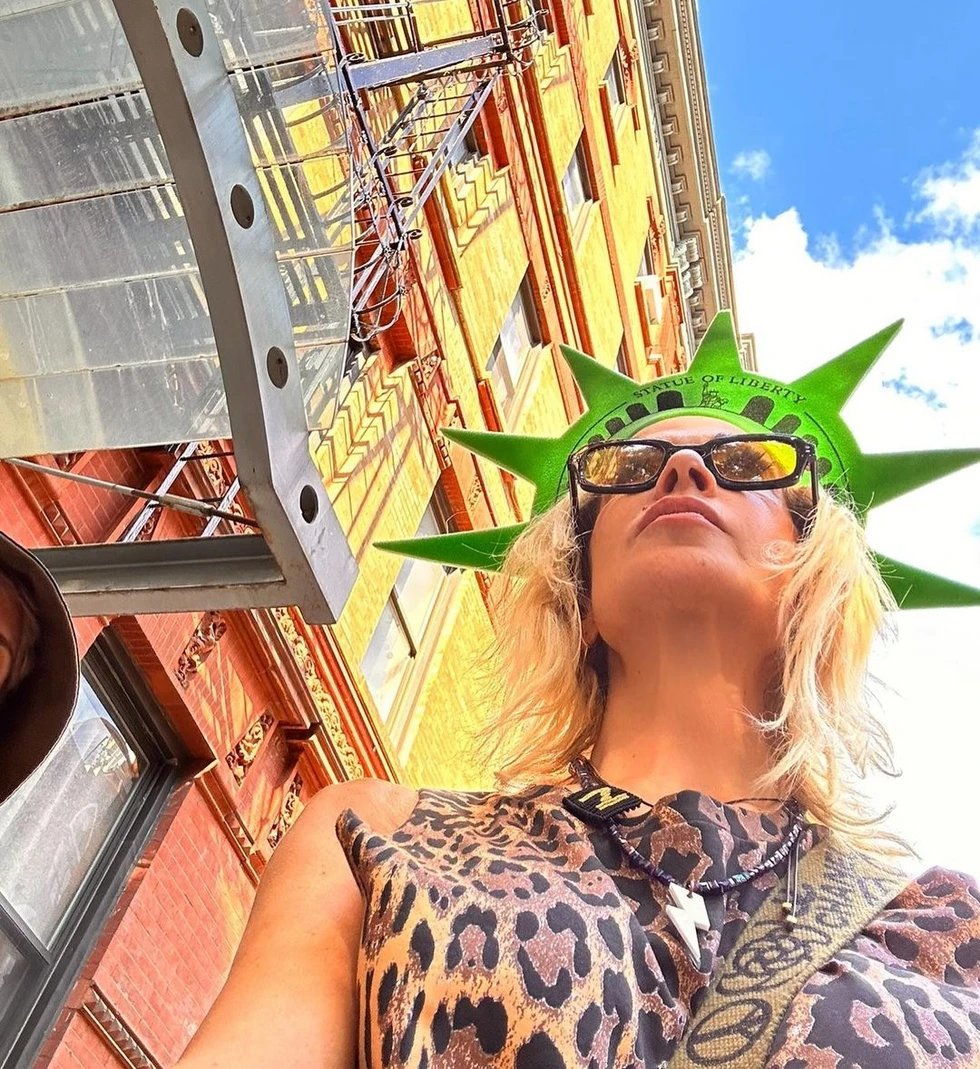 Η Άννα Βίσση με τα εγγόνια της βρέθηκαν στην 8th Avenue και η τραγουδίστρια φορούσε ένα παιχνιδιάρικο item στο κεφάλι με το Άγαλμα της Ελευθερίας, το οποίο συνδύασε, όπως μόνο εκείνη μπορεί, με animal print τοπ της και ριγέ παντελόνι.