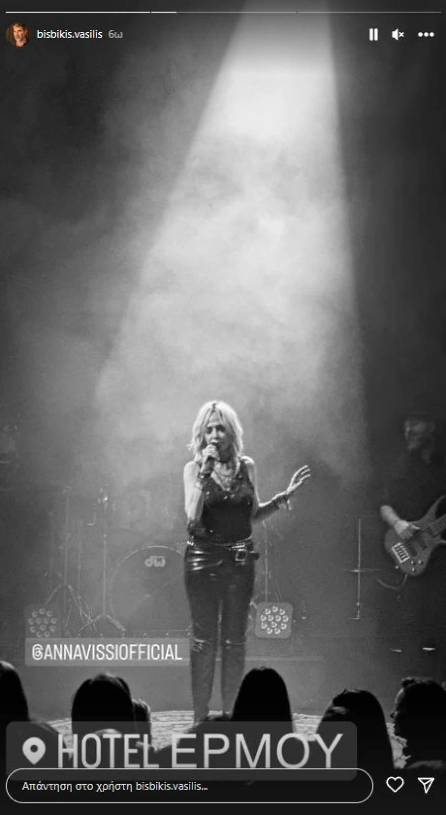 Instagram story από τη βραδιά ανέβασε και ο ηθοποιός. Ο Βασίλης Μπισμπίκης ανάρτησε μία φωτογραφία με την Άννα Βίσση και μία ακόμη στην οποία η τραγουδίστρια είναι στην πίστα με τη Δέσποινα Βανδή.