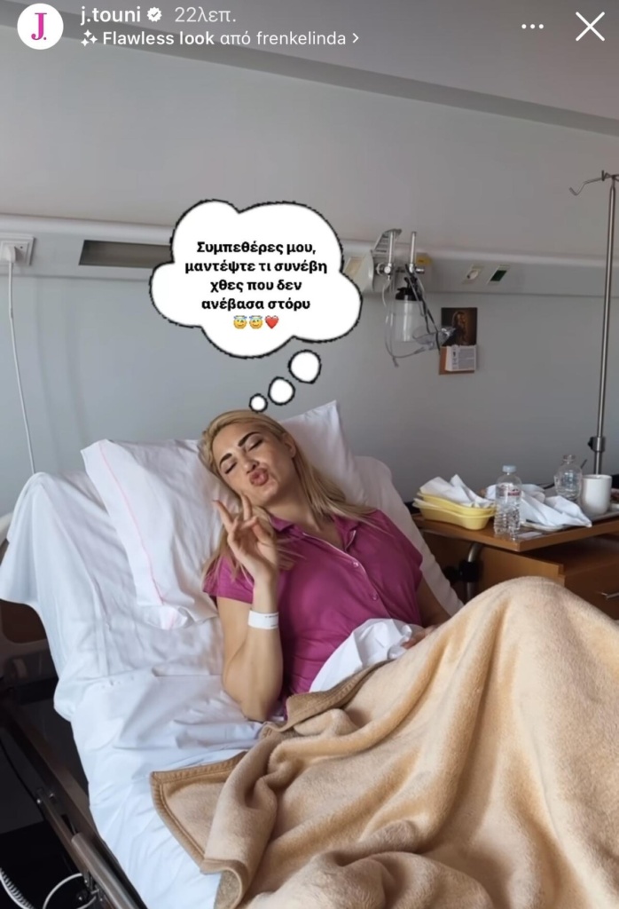 Την είδηση έκανε γνωστή η ίδια μέσα από το προσωπικό της λογαριασμό στο Instagram με μια ανάρτηση μέσα από το δωμάτιο όπου νοσηλεύεται.