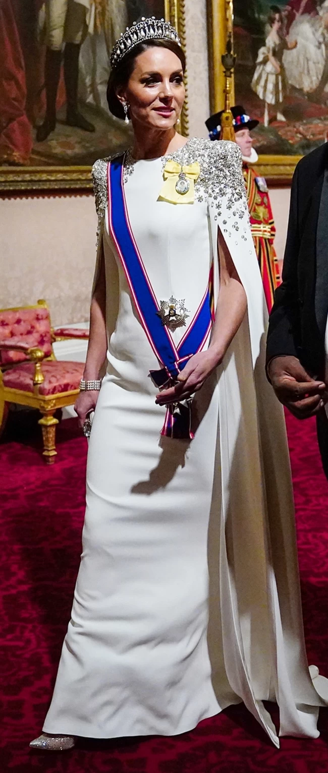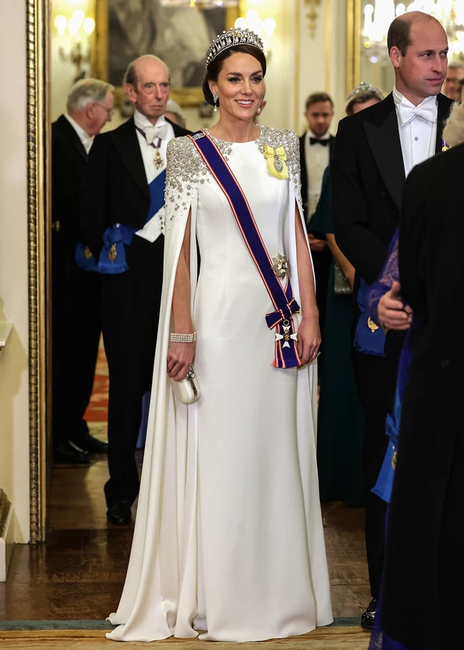 Αυτή την εβδομάδα, η Kέιτ Μίντλετον έκανε την πρώτη της επίσημη εμφάνιση με τον τίτλο της πριγκίπισσας της Ουαλίας, στο πλαίσιο της επίσημης δεξίωσης που παρέθεσε ο βασιλιάς Κάρολος Γ΄προς τιμήν του Προέδρου της Νότιας Αφρικής, Σίριλ Ραμαφόζα στο παλάτι του Μπάκιγχαμ.