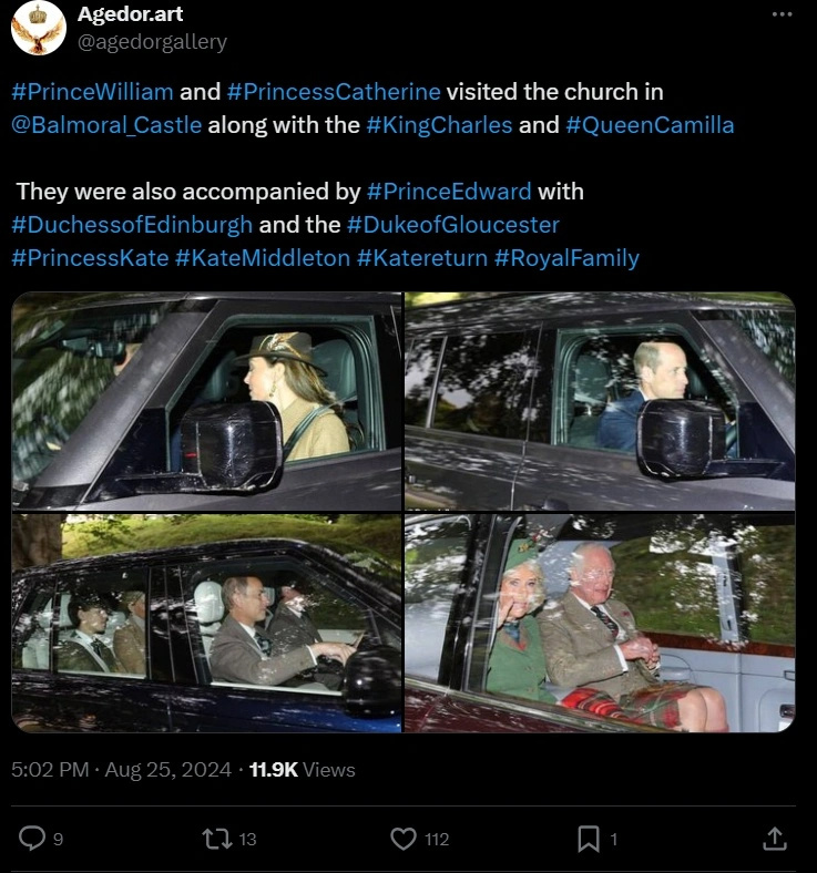Αυτή την περίοδο, η Κέιτ Μίντλετον και ο πρίγκιπας Γουίλιαμ απολαμβάνουν τις καλοκαιρινές τους διακοπές στο Μπαλμόραλ της Σκωτίας, και το πριγκιπικό ζεύγος, μαζί με τα παιδιά τους, συναντήθηκε με τη βασιλική οικογένεια για τη λειτουργία.