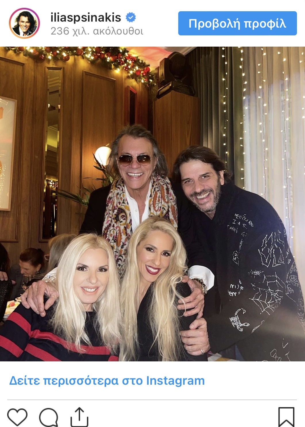 Πρόσφατα το αγαπημένο ζευγάρι συνάντησε τον Ηλία Ψινάκη, όπως αποκάλυψε ο ίδιος στο προφίλ του στο Instagram. Μαζί τους ήταν και η Αννίτα Πάνια.