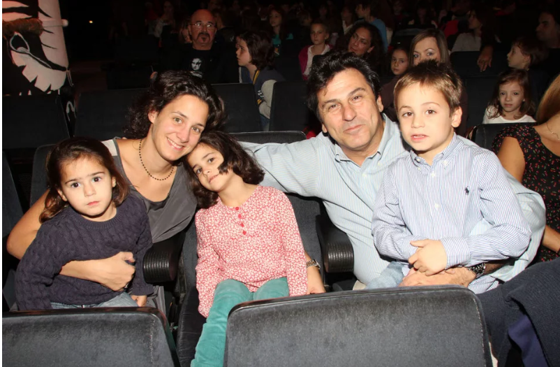 Η Άννα Αγγελοπούλου και ο Κώστας Αποστολίδης με τα παιδιά τους στο θέατρο το 2013
