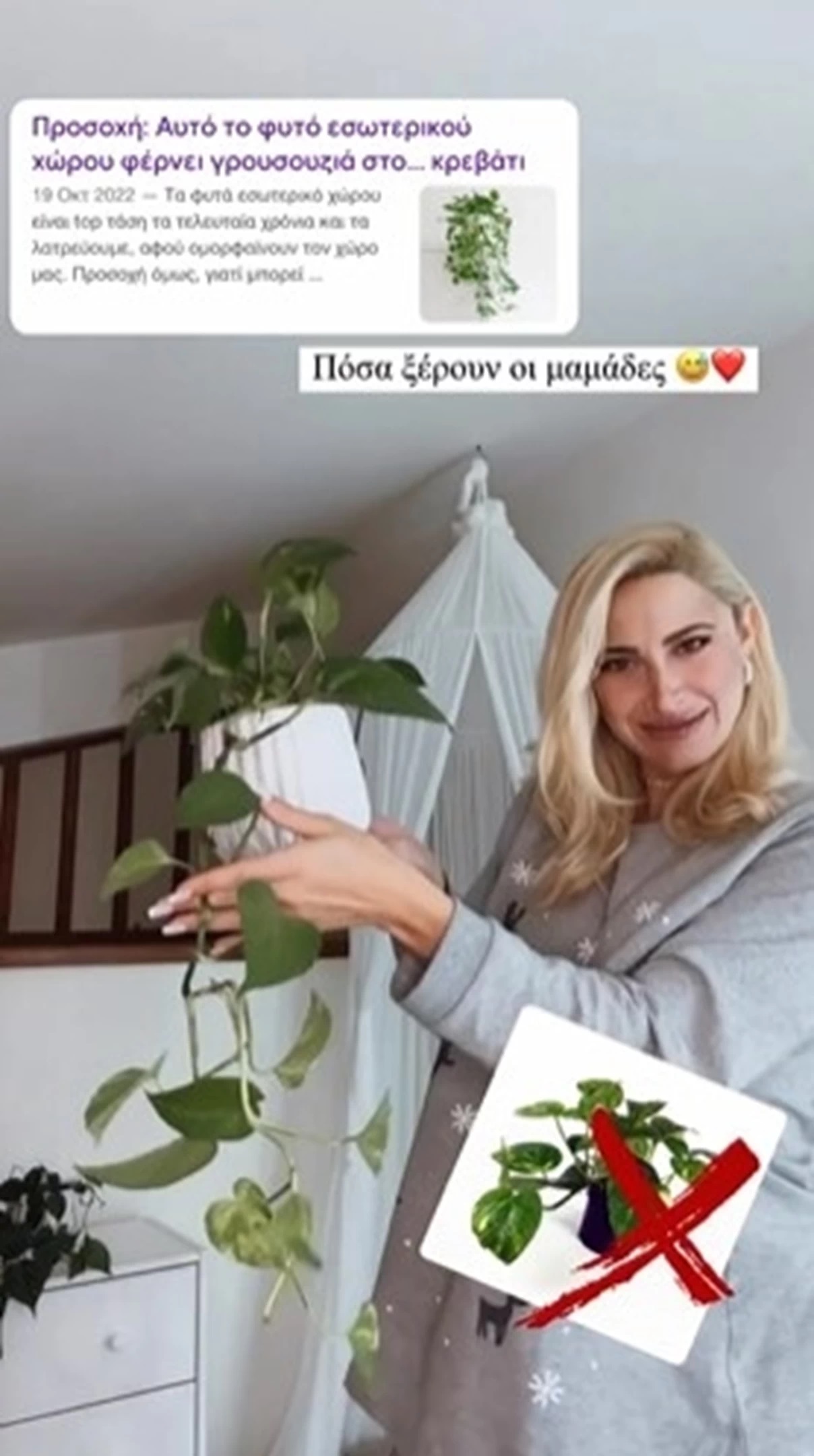 «Αυτό το φυτό εσωτερικού χώρου φέρνει γρουσουζιά… στο κρεβάτι»… ενημερώνει τους followers της η Ιωάννα Τούνη.