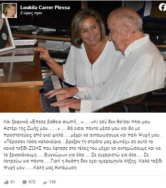 “Πέρασαν τόσα καλοκαίρια… βρεξαν τη στράτα μας φωτιές” σε αυτό το κοινό ταξίδι ΖΩΗΣ που έφτασε στο τέλος του μέχρι να ανταμώσουμε και να το ξανακάνουμε…. Ευγνώμων για όλα…. Σε ευχαριστώ για όλα…. Σε λατρεύω για πάντα…..Γιατί η Αγάπη δεν έχει ημερομηνία λήξης. Καλό ταξίδι Ψυχή μου …..Καλή μας Αντάμωση» έγραψε η Λουκίλα Καρρέρ η οποία στάθηκε στο πλευρό του για παραπάνω από 30 χρόνια!