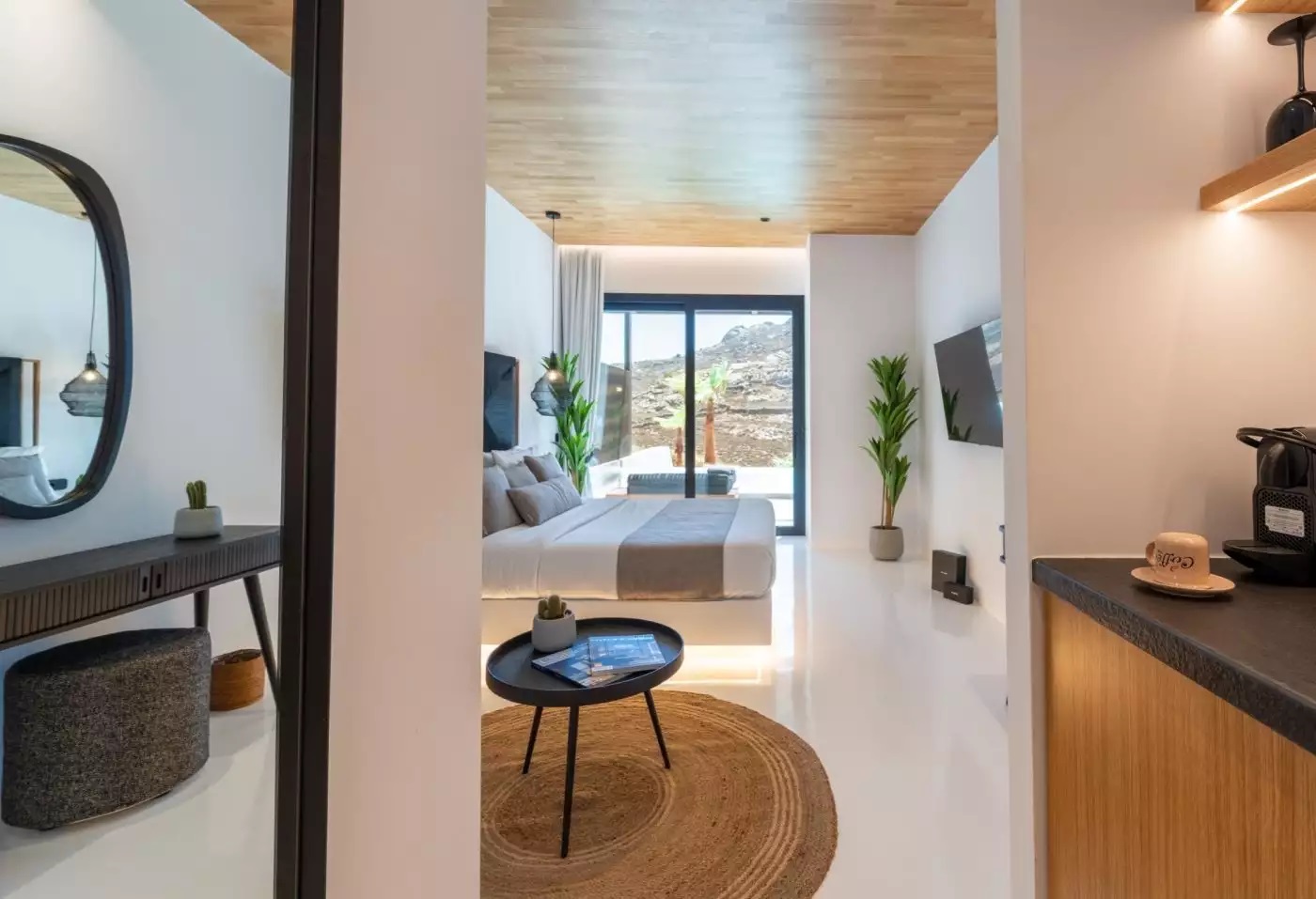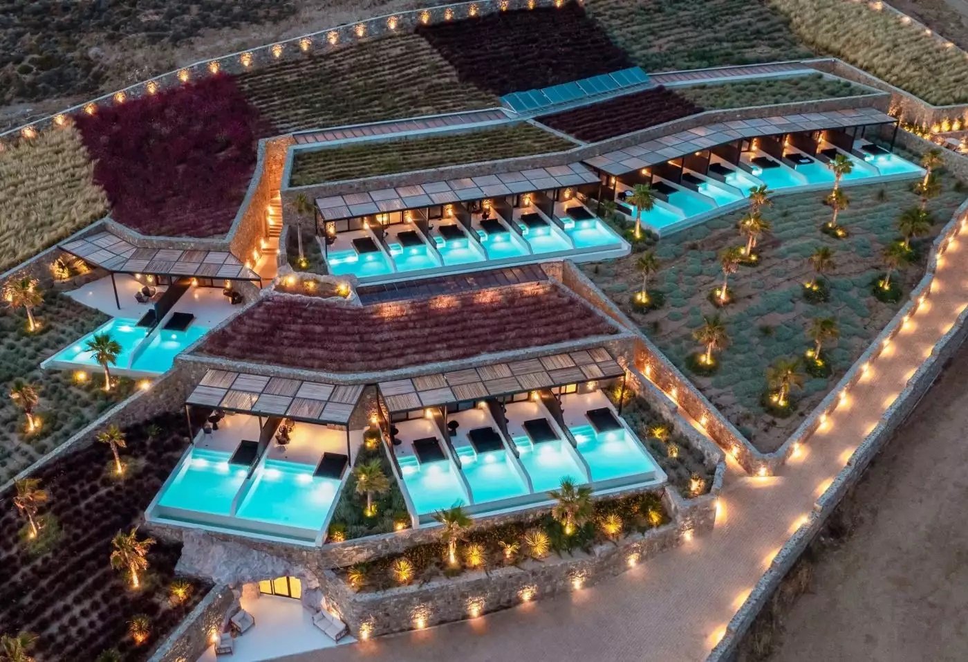 Το νεόκτιστο πολυτελές συγκρότημα βρίσκεται μόλις 500 μέτρα μακριά από τη φημισμένη παραλία Αλεμάγου της Μυκόνου με την κάθε σουίτα να ενοικιάζεται αυτή τη περίοδο για 500 ευρώ τη βραδιά. Το ξενοδοχείο διαθέτει επίσης σπα, γυμναστήριο, αίθουσα μασάζ.