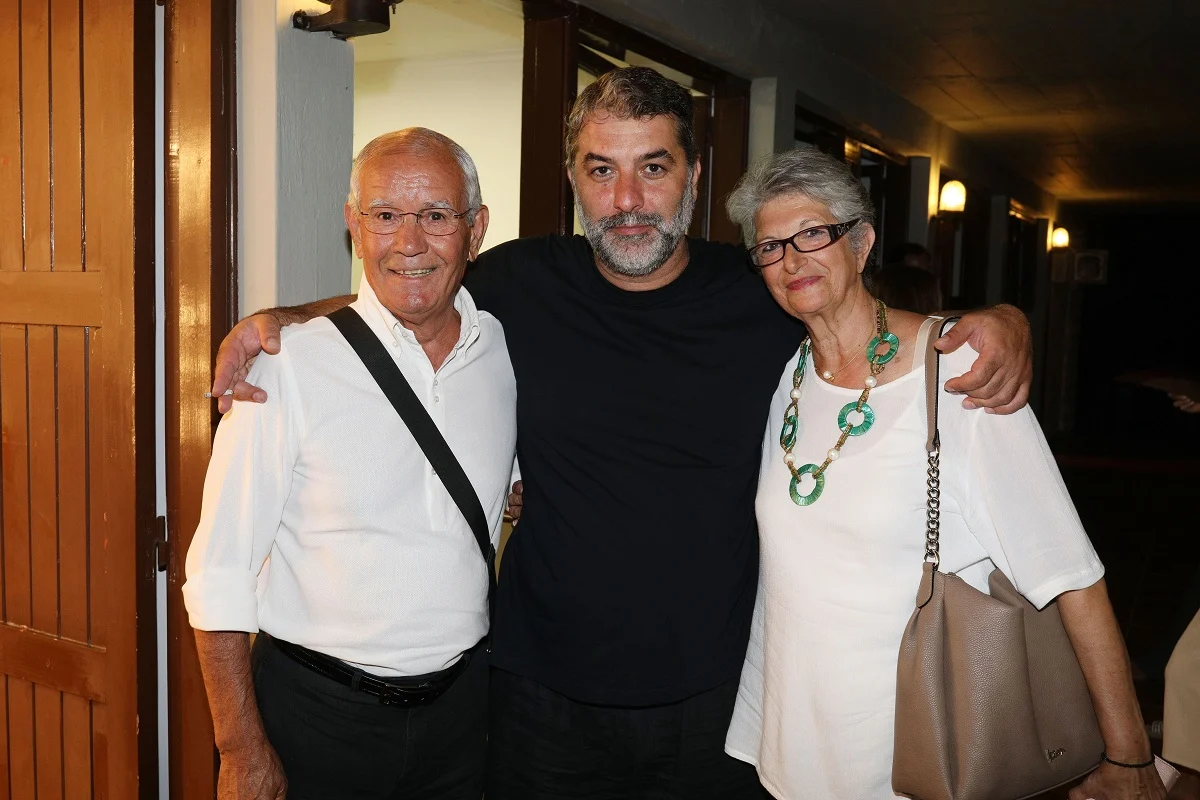 Ο Βασίλης Μπισμπίκης και οι γονείς του που ποζάρει μαζί τους