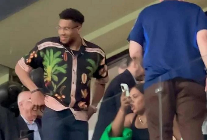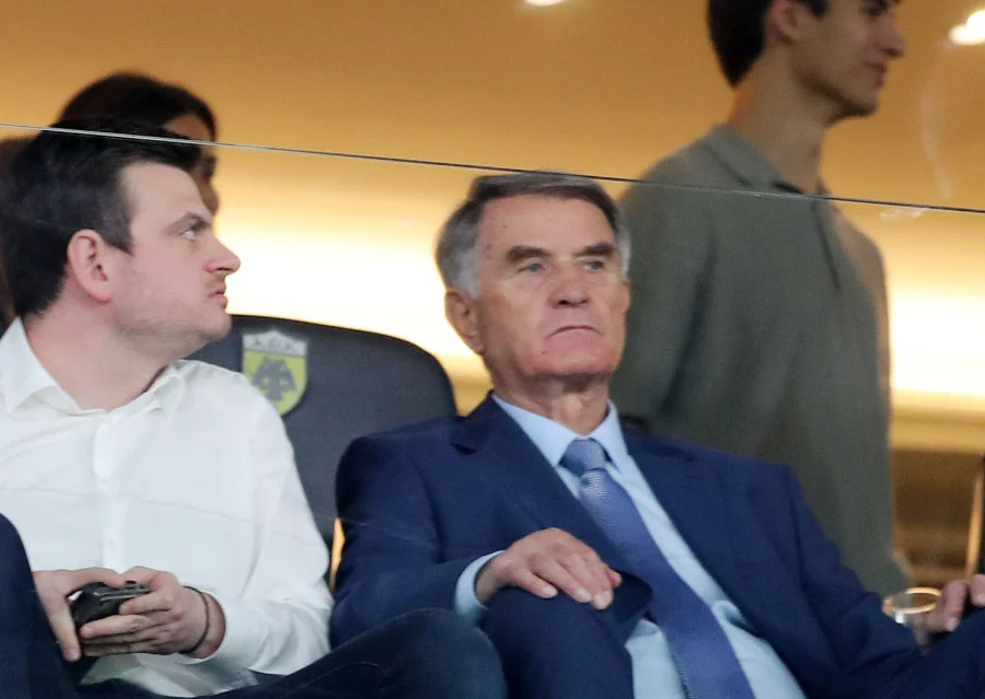 Ανάμεσά του ο Ερνέστο Βαλβέρδε, ο Γιάννης Αντετοκούνμπο, ο Λουίς Φίγκο, ο ράπερ Snik, ο δήμαρχος Πειραιά, Γιάννης Μώραλης, ο πρόεδρος του Ολυμπιαακού, Βαγγέλης Μαρινάκης. Επίσης, στις κερκίδες είναι ο πρόεδρος της Κύπρου, Νίκος Χριστοδουλίδης, ο προπονητής του μπασκετικού Ολυμπιακού Γιώργος Μπαρτζώκας και ο πρόεδρος του ΣΥΡΙΖΑ, Στέφανος Κασσελάκης.