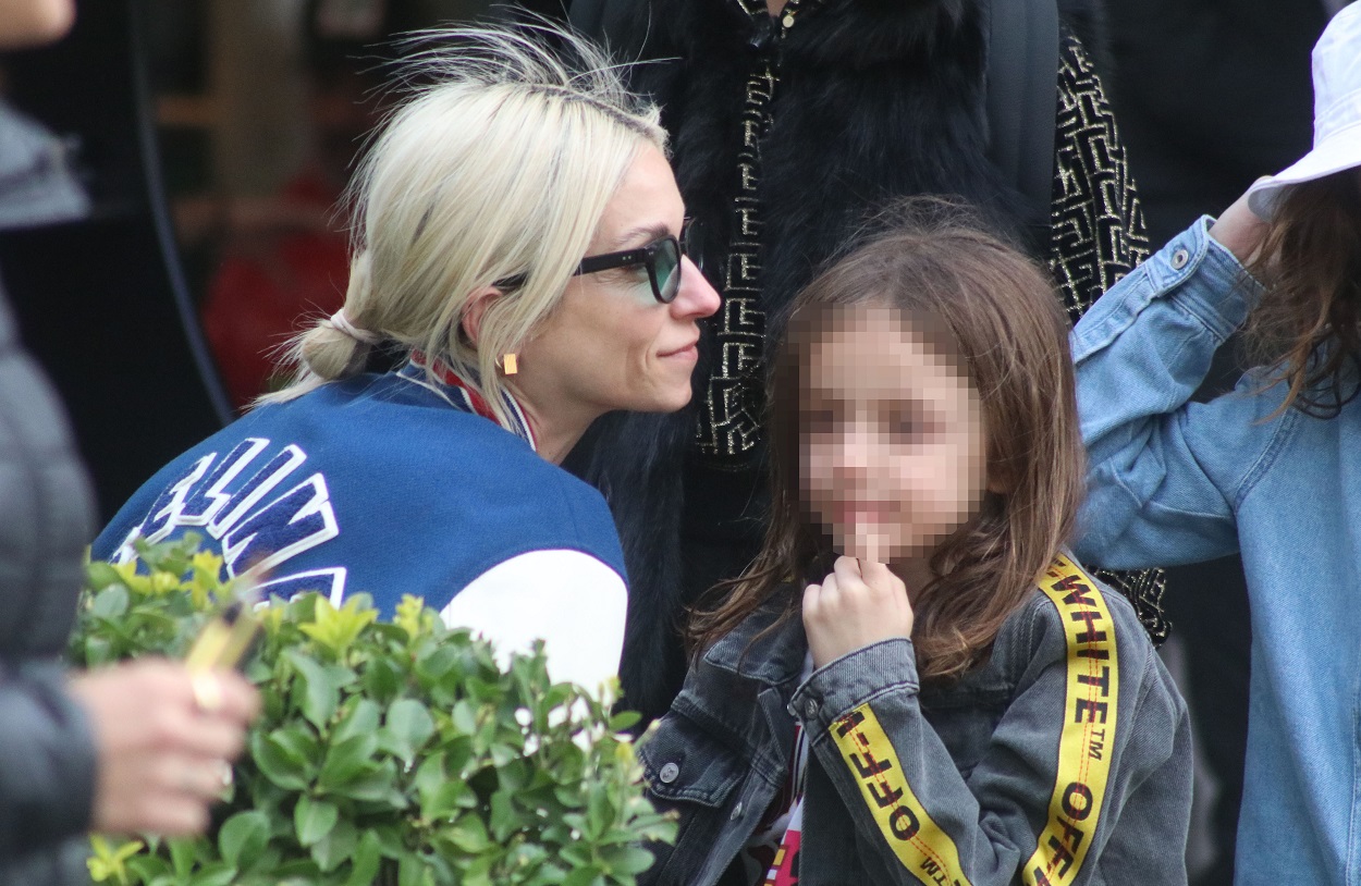 Η Άννα Βίσση, επέλεξε ένα leather μακρύ παντελόνι, με φαρδιά μπατζάκια το οποίο συνδύασε με φούτερ σε ιδιαίτερο pattern και μακρύ, μαύρο γιλέκο. Η κόρη της, από την άλλη, προτίμησε ένα denim pant, με λευκό, ψηλοτάκουνο μποτάκι και φούτερ.
