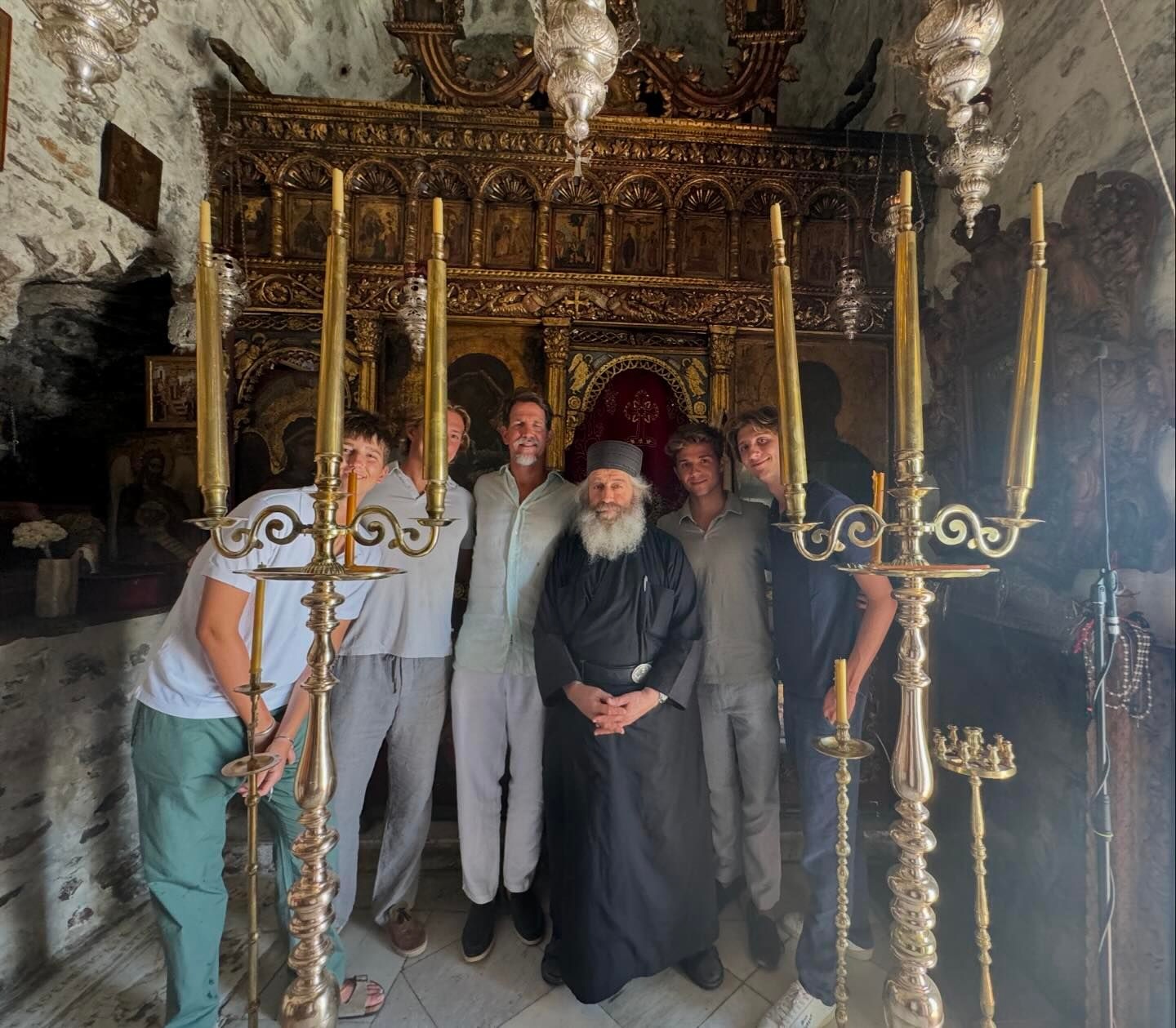 Μάλιστα ο Παύλος είχε μία ολιγόλεπτη συζήτηση με τον Ηγούμενο, παρουσία των παιδιών του ενώ λίγο αργότερα όλοι μαζί απόλαυσαν την υπέροχη θέα στο απέραντο γαλάζιο του Αιγαίου αλλά και τη φιλοξενία των μοναχών.