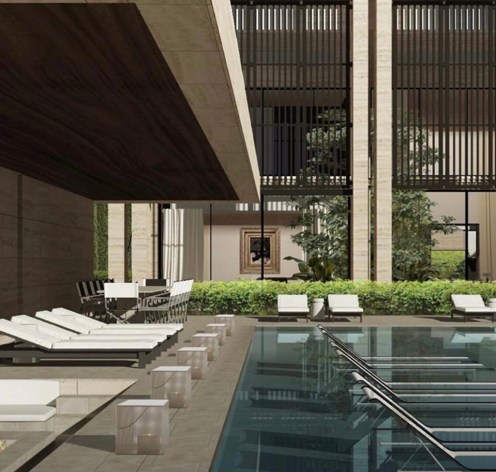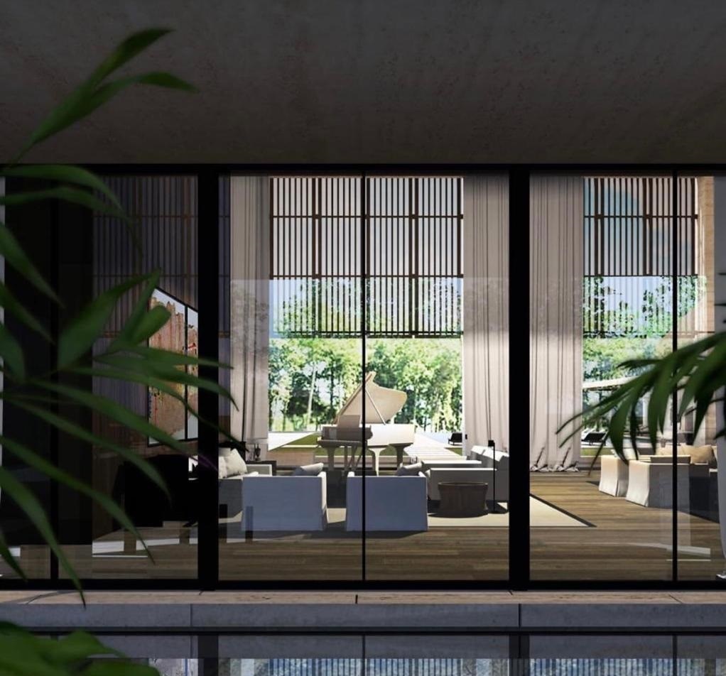 Στον εξωτερικό χώρο, ξεχωρίζει η τεράστια πισίνα με τις πολλές λευκές ξαπλώστρες σε ζεύγη και τα άνετα σαλόνια κήπου, επίσης λευκά, ενώ στο εσωτερικό του σπιτιού, ξεχωρίζουν οι καναπέδες και οι πολυθρόνες, τα πολυτελή έργα τέχνης, οι καθρέφτες, τα τζάκια κι ένα λευκό πιάνο, με τα γήινα χρώματα να κυριαρχούν, με διαχρονικό ξύλο στο πάτωμα.