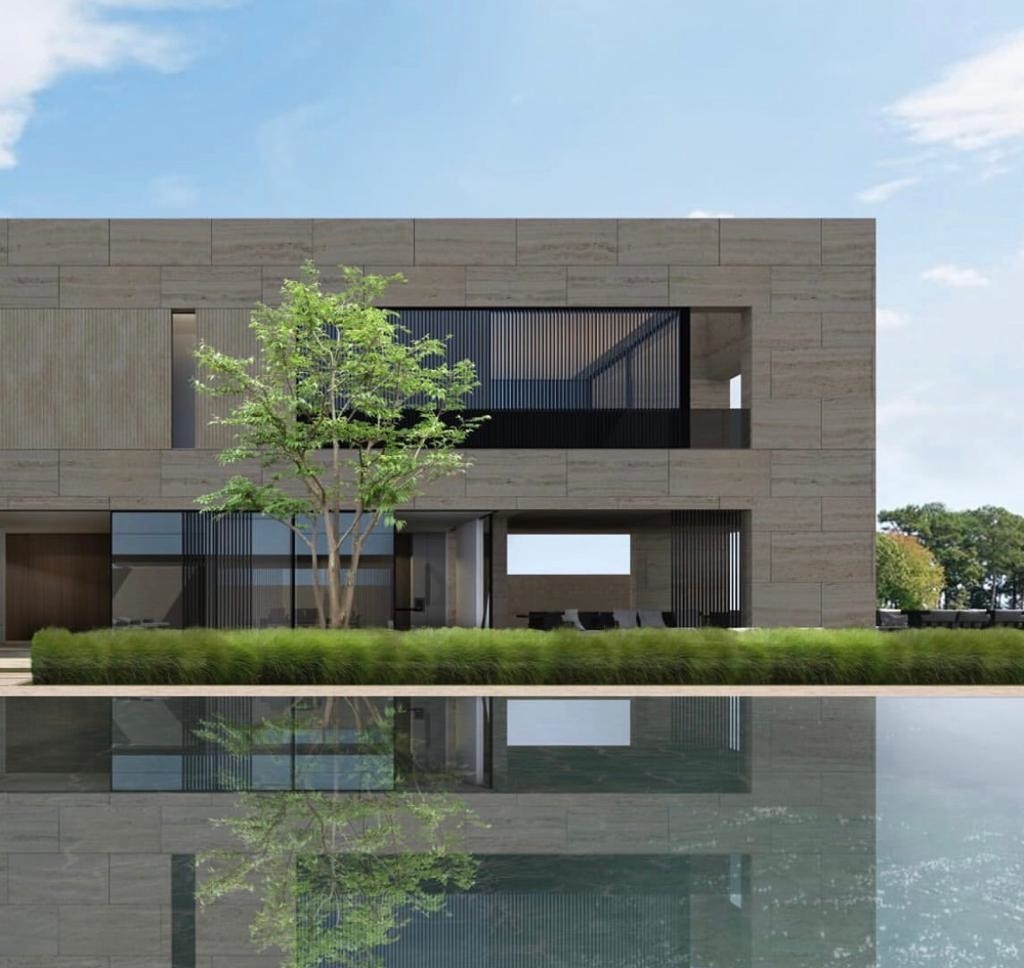 Το υδάτινο στοιχείο τραβάει τα βλέμματα στο σπίτι με τις λιτές, σχεδόν «αυστηρές» γραμμές, καθώς, όχι μόνο έχει μια μεγάλη πισίνα, αλλά και μικρές τεχνητές λίμνες.