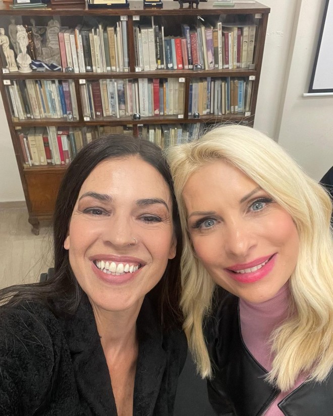 Κατά τη διάρκεια της παρουσίασης του βιβλίου, η Ελένη Μενεγάκη πόζαρε χαρούμενη με την αγαπημένη της θεία, αποτυπώνοντας τη στιγμή με μια λεζάντα.