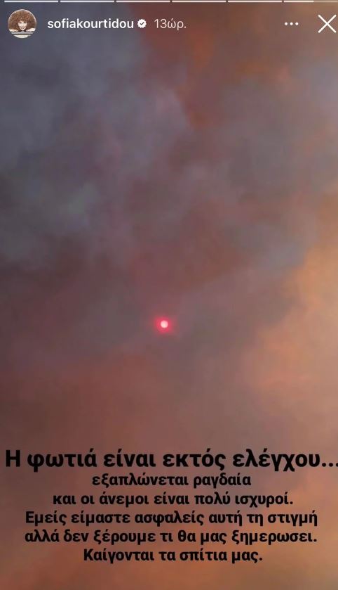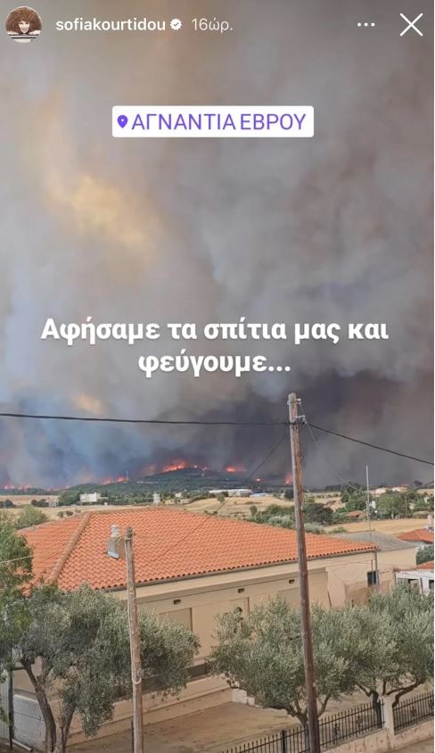 Η Σοφία Κουρτίδου με μερικά stories στον προσωπικό της λογαριασμό στο Instagram, έκανε έκκληση για βοήθεια και ενημέρωσε τους διαδικτυακούς της φίλους πως αναγκάστηκε να εκκενώσει το σπίτι της στην Αλεξανδρούπολη, λόγω της πυρκαγιάς.