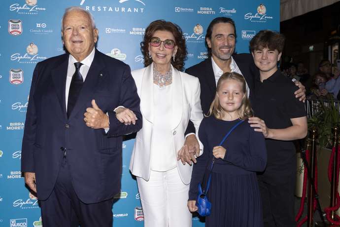 Η Sophia Loren μόλις εγκαινίασε το νέο της εστιατόριο που φέρει το όνομά της στο Μιλάνο. Με αφορμή το νέο της αυτό επιχειρηματικό βήμα, πραγματοποίησε μία σπάνια οικογενειακή εμφάνιση. Στα εγκαίνια τη συνόδευσε ο μεγαλύτερος γιος της, ο μαέστρος Carlo Ponti Jr. και τα παιδιά του και εγγόνια της Vittorio και Beatrice. Μαζί τους απαθανατίστηκε επίσης ο επιχειρηματίας Luciano Cimmino.