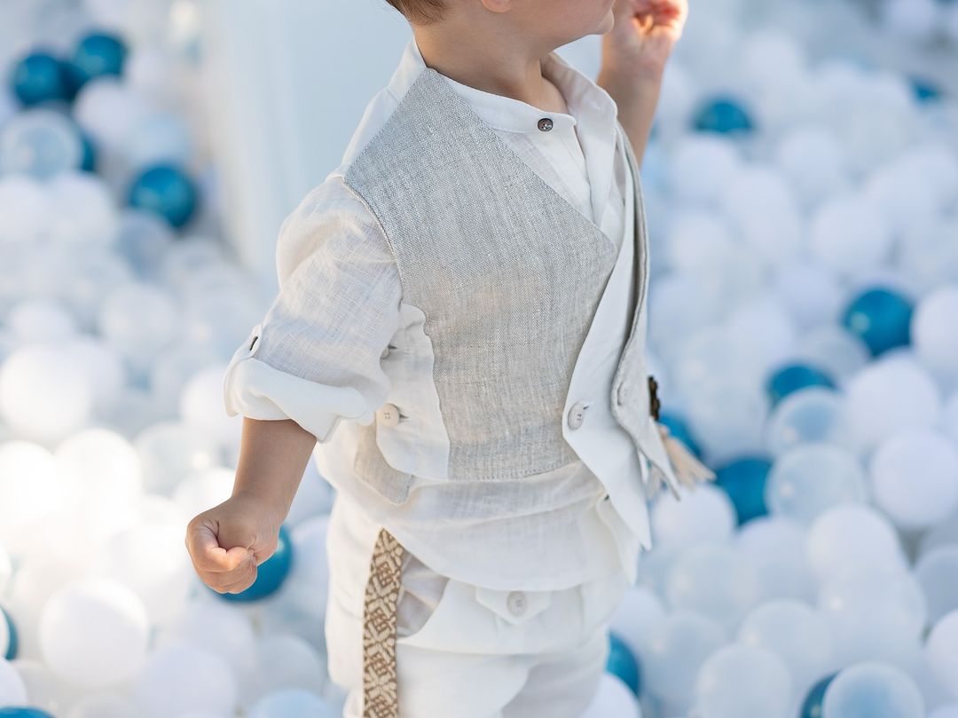 Τα βαφτιστικά του μικρού Ερμή ήταν λινό πουκάμισο παντελόνι και γιλέκο.