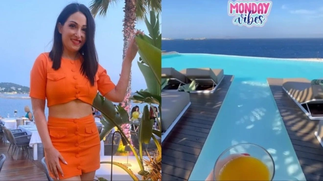 Μέσω Instagram stories, πόζαρε φορώντας το μπικίνι της, γυαλιά ηλίου και ένα μεγάλο καπέλο. Σε άλλη ανάρτηση, δείχνει το outfit που επέλεξε για τη νυχτερινή της έξοδο.